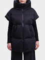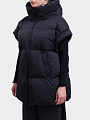 Элегантный чёрный пуховый жилет с высоким воротником — воплощение современного минимализма и практичности: объёмный крой создаёт эффектный силуэт, а лаконичный дизайн без лишних деталей подчёркивает утончённость и универсальность модели.